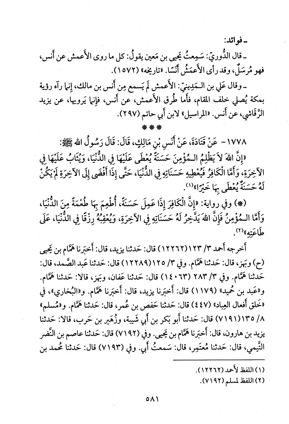 - قلنا: إِسناده ضعيفٌ؛ سليمان بن مِهران الأَعمش لم يسمع من أَنس بن مالك. انظر فوائد الحديث رقم (٢٥٧).