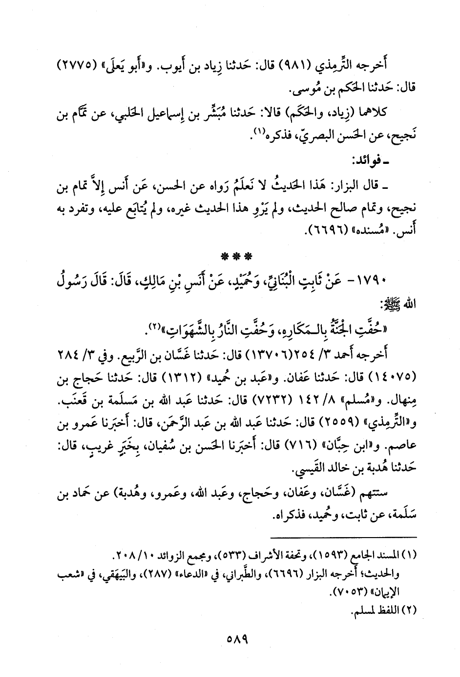 أخرجه أحمد (١٣٧٠٦) قال: حدثنا غسان بن الربيع. وفي ٣/ ٢٨٤ (١٤٠٧٥) قال: حدثنا عفان. و «عَبد بن حُميد» (١٣١٢) قال: حدثنا حجاج بن مِنهال. و «مسلم» ٨/ ١٤٢ (٧٢٣٢) قال: حدثنا عبد الله بن مَسلَمة بن قعنب. و «التِّرمِذي» (٢٥٥٩) قال: حدثنا عبد الله بن عبد الرَّحمَن، قال: أخبرنا عَمرو بن عاصم. و «ابن حِبَّان» (٧١٦) قال: أخبرنا الحسن بن سفيان، بخبر غريب، قال: حدثنا هُدبة بن خالد القيسي.