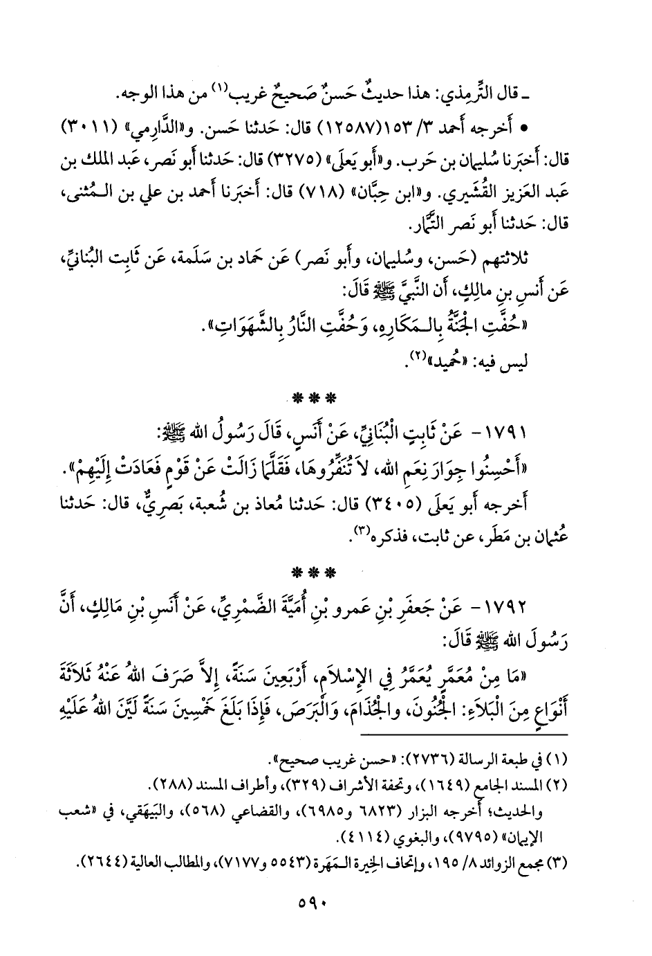 ثلاثتهم (حسن، وسليمان، وأَبو نصر) عن حماد بن سلمة، عن ثابت البُنَاني، عن أَنس بن مالك، أن النبي صَلى الله عَليه وسَلم قال: