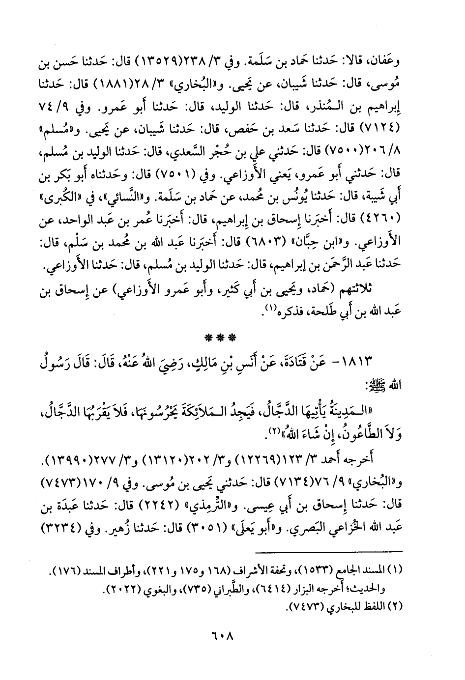 (¬١) المسند الجامع (١٥٣٣)، وتحفة الأشراف (١٦٨ و ١٧٥ و ٢٢١)، وأطراف المسند (١٧٦).