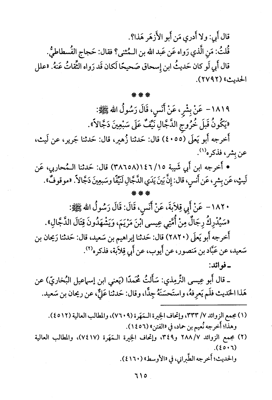(¬١) مَجمَع الزوائد ٧/ ٢٨٨ و ٣٤٩، وإتحاف الخِيرَة المَهَرة (٧٤١٧)، والمطالب العالية (٤٥٠٦).