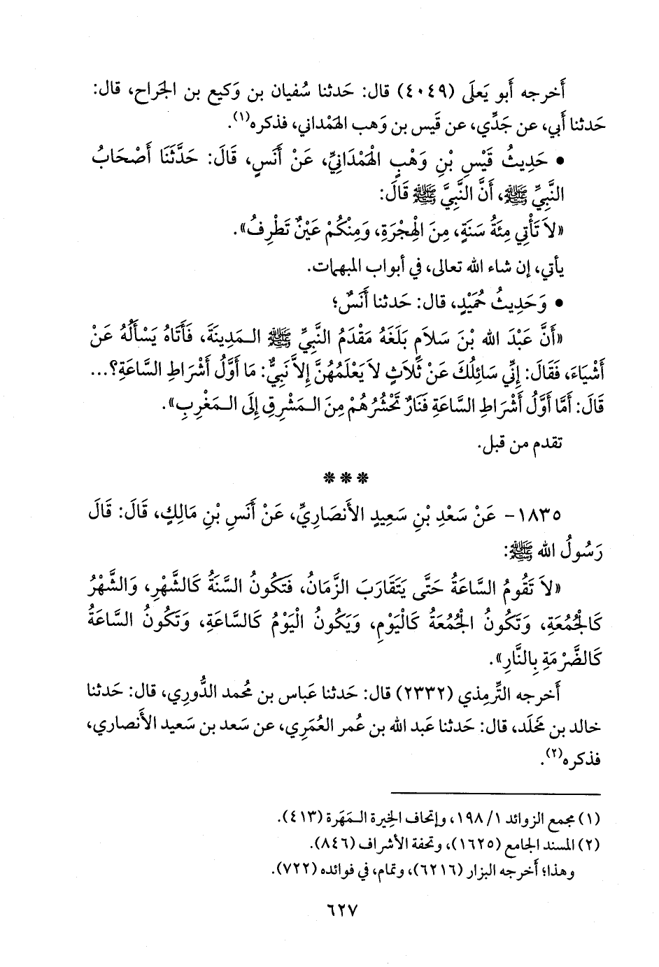 ١٨٣٥ - عن سعد بن سعيد الأَنصاري، عن أَنس بن مالك، قال: قال رسول الله صَلى الله عَليه وسَلم: