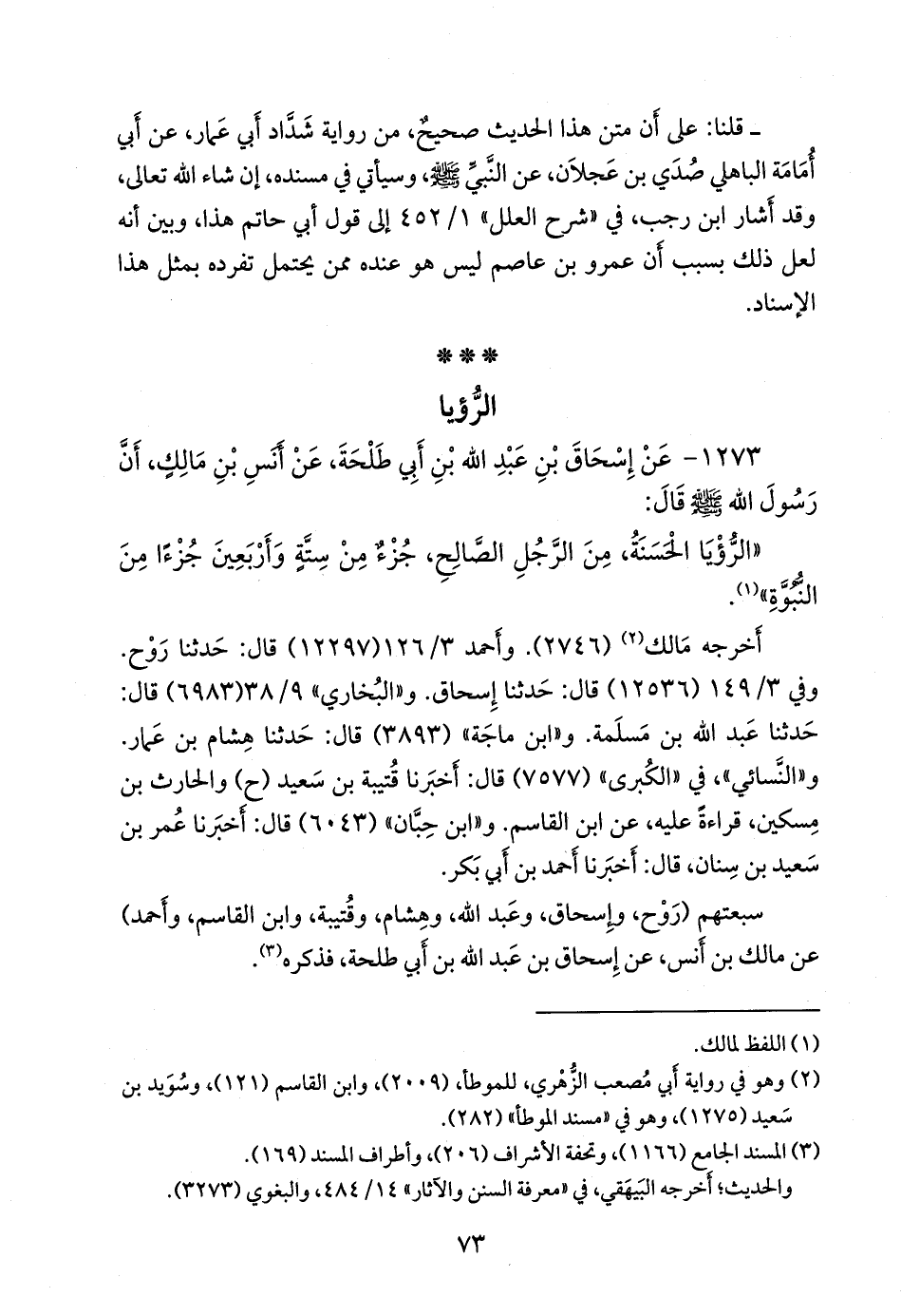 ١٢٧٣ - عن إسحاق بن عبد الله بن أبي طلحة، عن أَنس بن مالك، أن رسول الله صَلى الله عَليه وسَلم قال:
