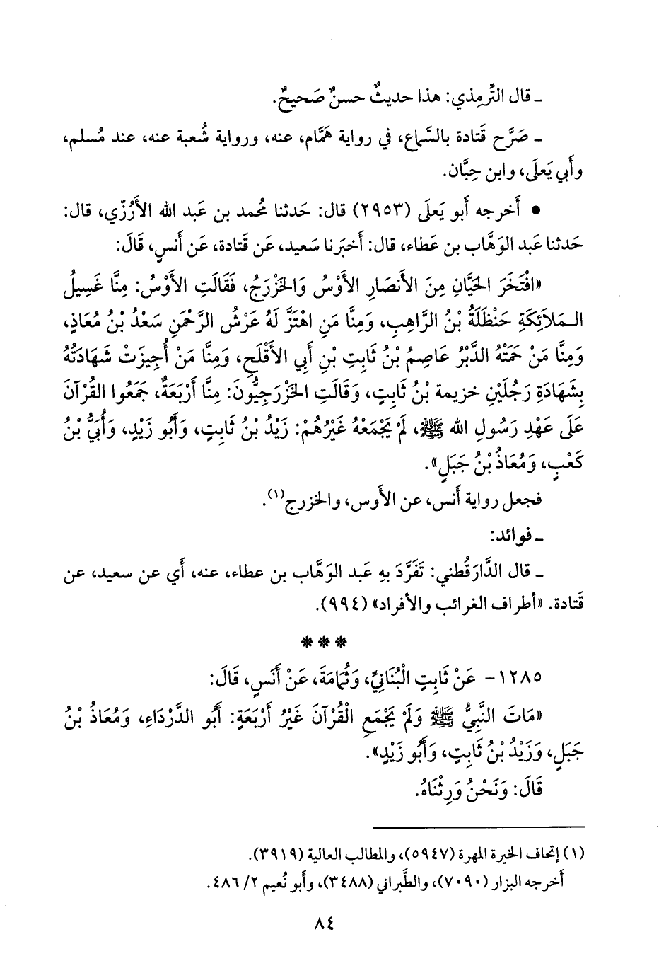 «مات النبي صَلى الله عَليه وسَلم ولم يجمع القرآن غير أربعة: أَبو الدرداء، ومعاذ بن جبل، وزيد بن ثابت، وأَبو زيد».