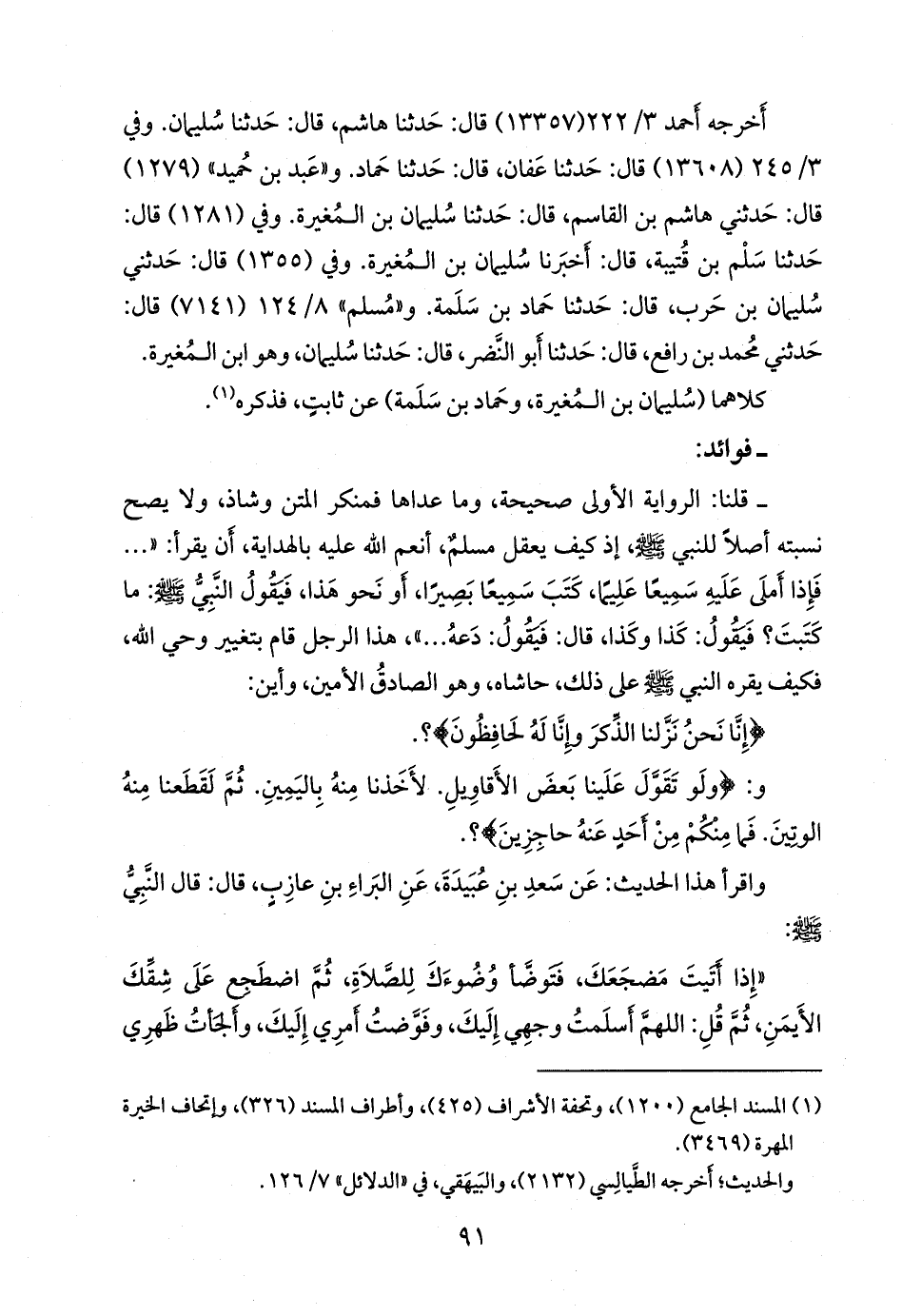 واقرأ هذا الحديث: عن سعد بن عُبَيدة، عن البراء بن عازب، قال: قال النبي صَلى الله عَليه وسَلم: إذا أتيت مضجعك، فتوضأ وضوءك للصلاة، ثم اضطجع على شقك الأيمن، ثم قل: اللهم أسلمت وجهي إليك، وفوضت أمري إليك، وألجأت ظهري