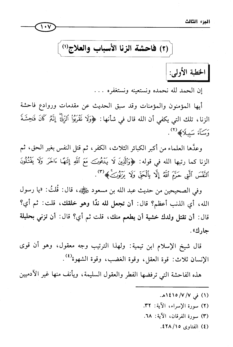 (2) فاحشة الزنا الأسباب والعلاج (¬1)