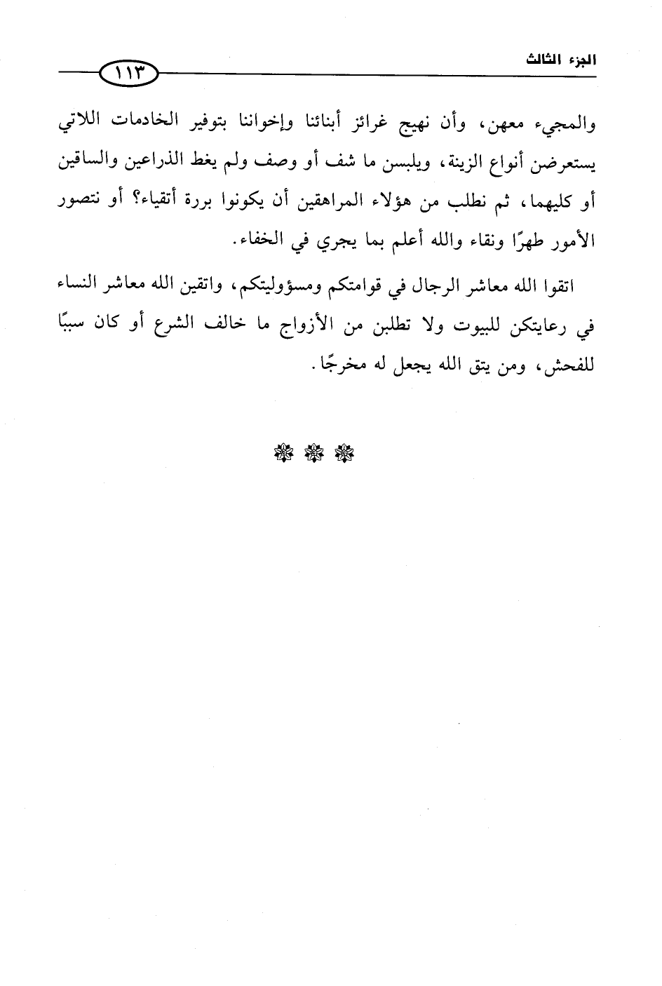 اتقوا الله معاشر الرجال في قوامتكم ومسؤوليتكم، واتقين الله معاشر النساء في رعايتكن للبيوت ولا تطلبن من الأزواج ما خالف الشرع أو كان سببًا للفحش، ومن يتق الله يجعل له مخرجًا.