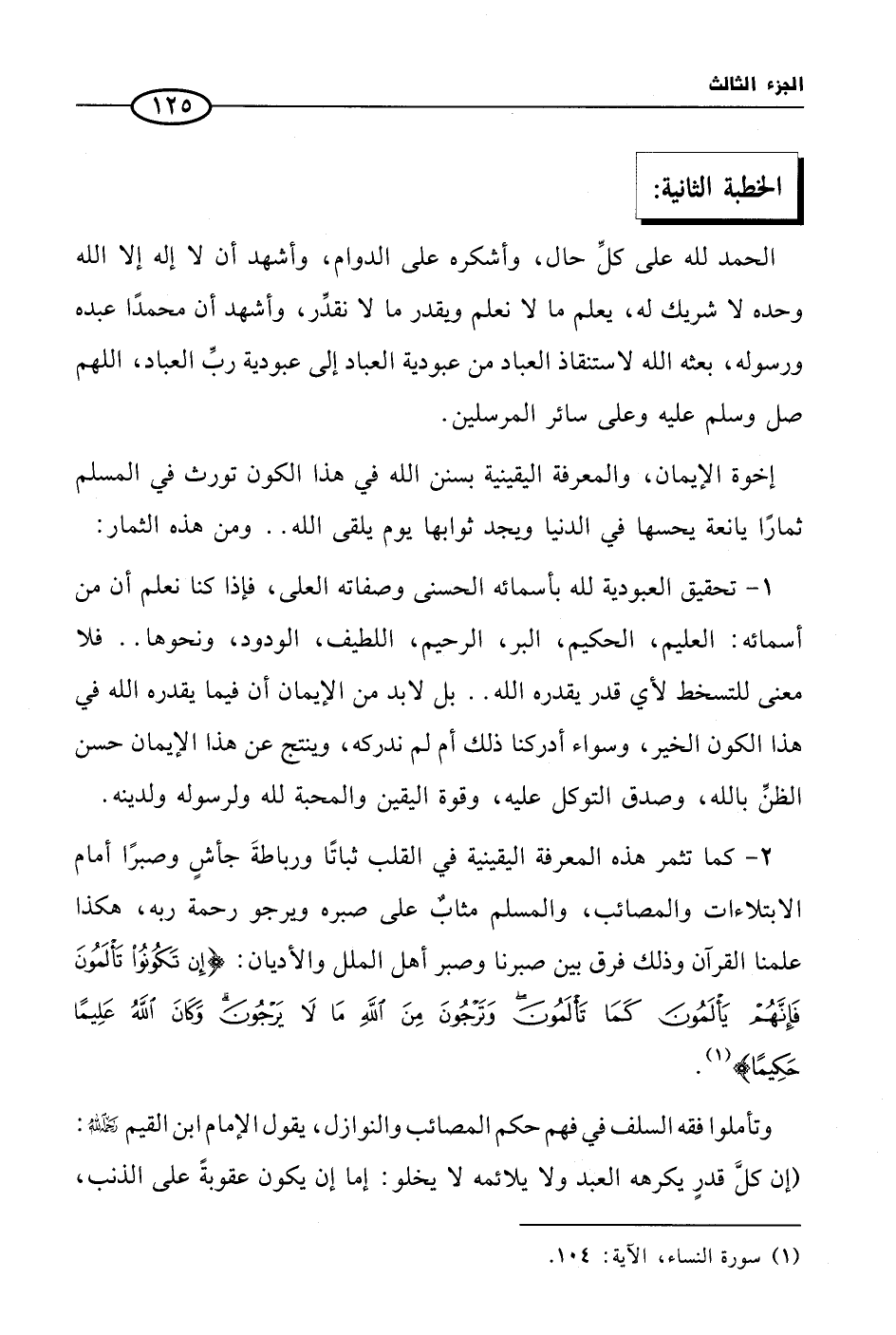 إخوة الإيمان، والمعرفة اليقينية بسنن الله في هذا الكون تورث في المسلم ثمارًا يانعة يحسها في الدنيا ويجد ثوابها يوم يلقى الله .. ومن هذه الثمار:
