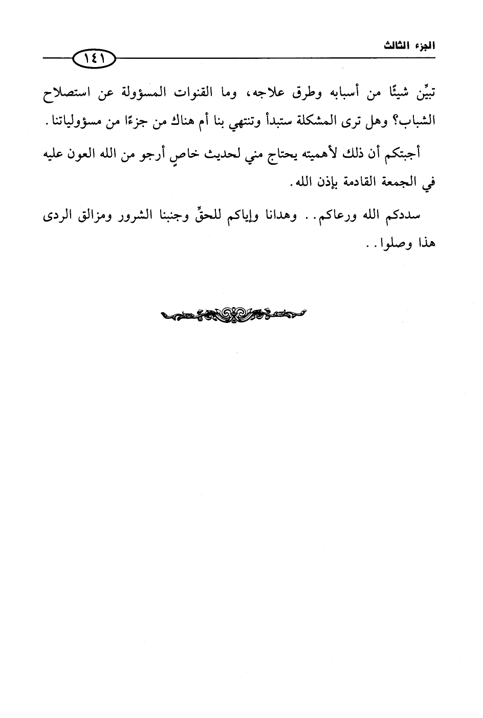 تبيِّن شيئًا من أسبابه وطرق علاجه، وما القنوات المسؤولة عن استصلاح الشباب؟ وهل ترى المشكلة ستبدأ وتنتهي بنا أم هناك من جزءًا من مسؤولياتنا.
