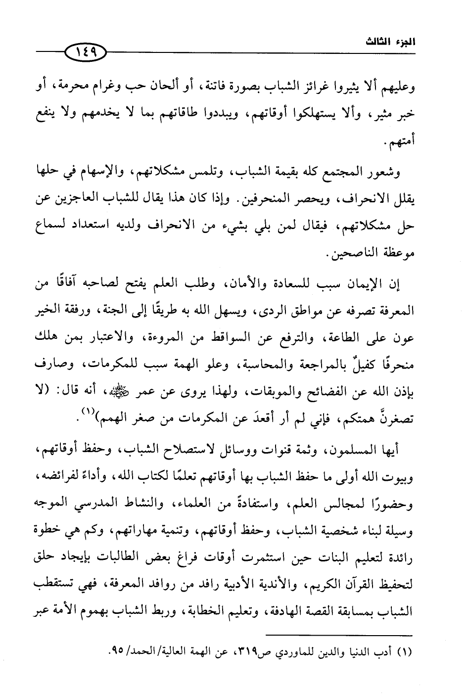 (¬1) أدب الدنيا والدين للماوردي ص 319، عن الهمة العالية/ الحمد/ 95.