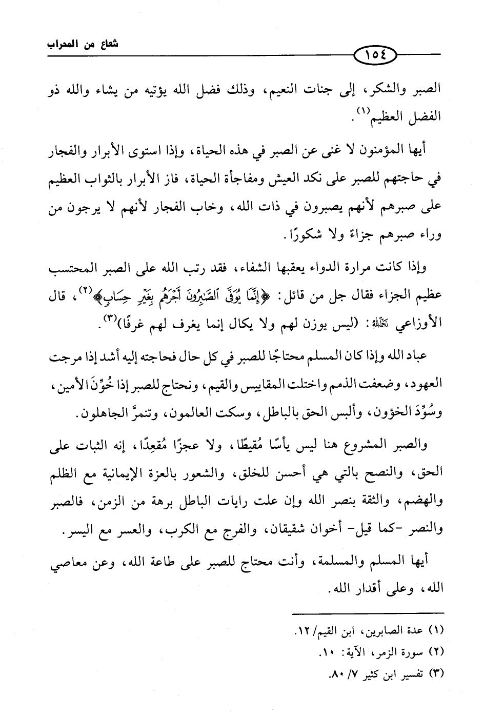 (¬1) عدة الصابرين، ابن القيم/ 12.