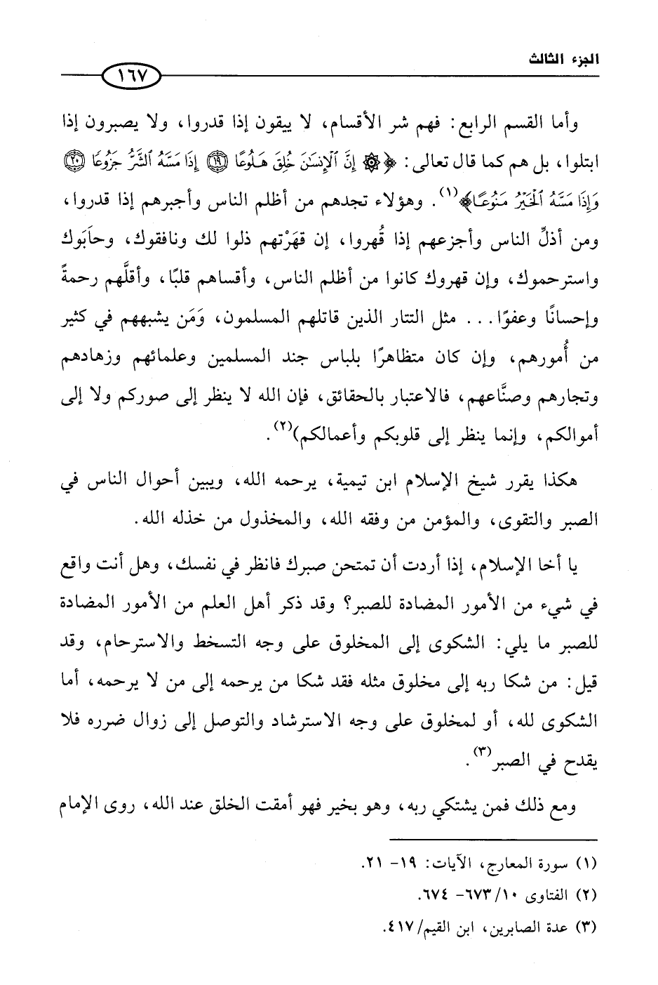 (¬3) عدة الصابرين، ابن القيم/ 417.