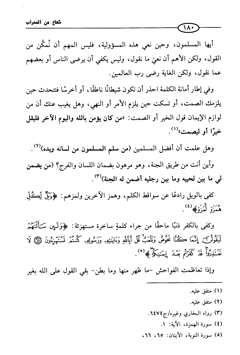كفى بالويل رادعًا عن سواقط الكلم، وهمز الآخرين ولمزهم: {وَيْلٌ لِّكُلِّ هُمَزَةٍ لُّمَزَةٍ} (¬4).