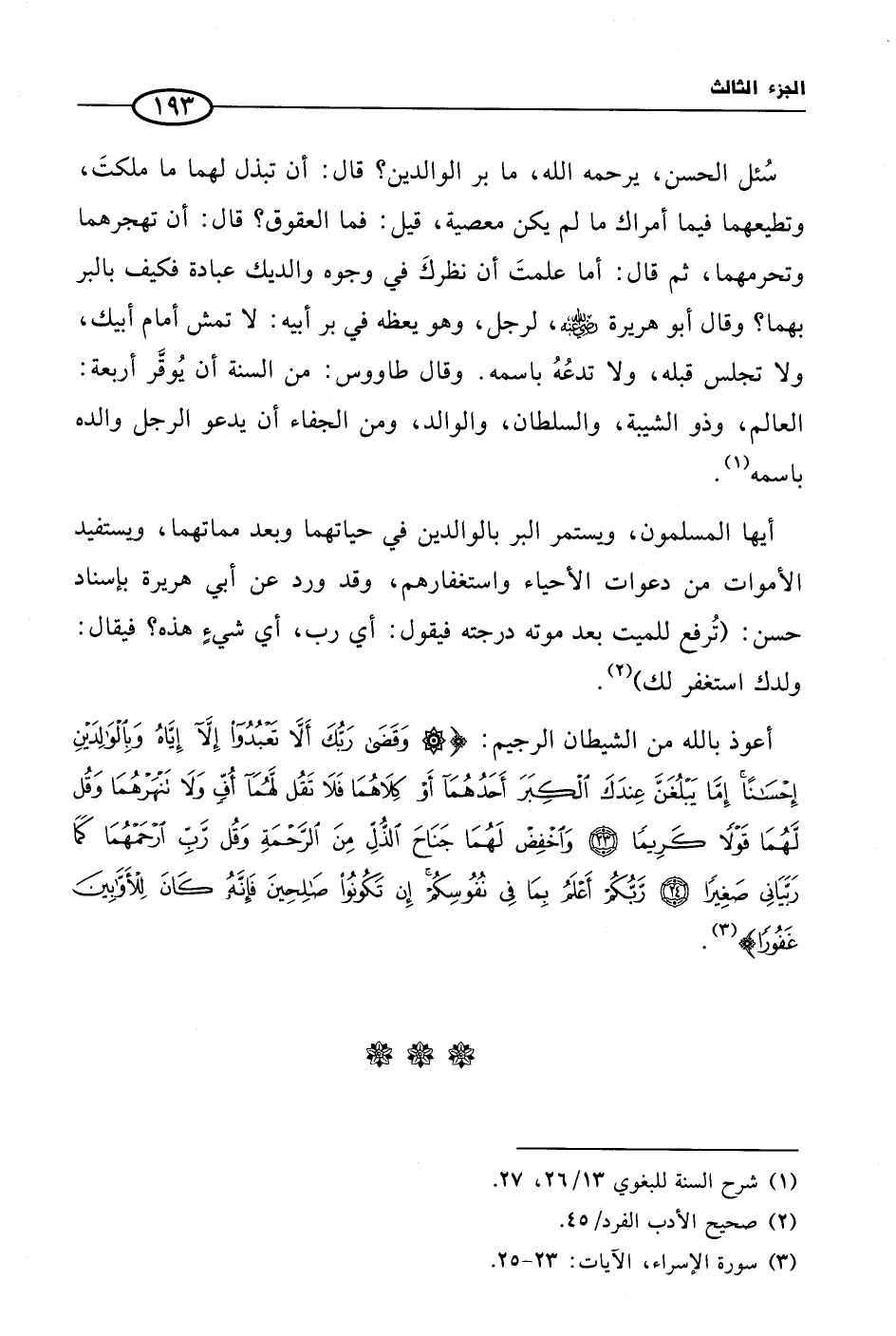 (¬3) سورة الإسراء، الآيات: 23 - 25.
