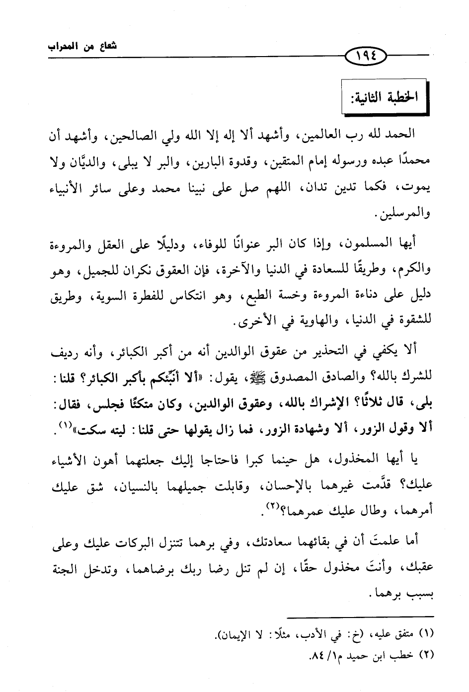 (¬2) خطب ابن حميد م 1/ 84.