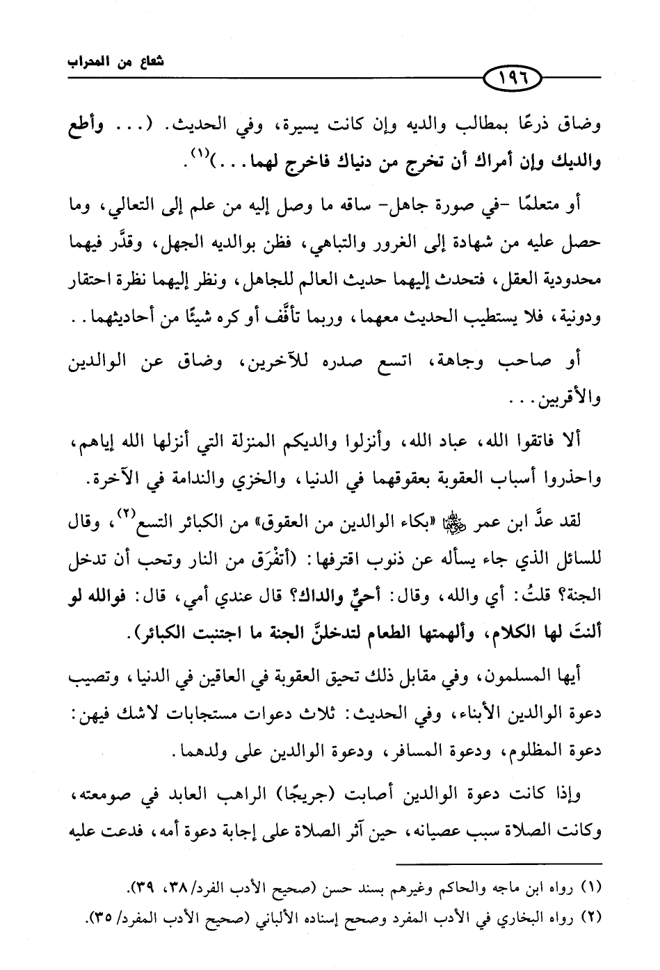 أو صاحب وجاهة، اتسع صدره للآخرين، وضاق عن الوالدين والأقربين ...