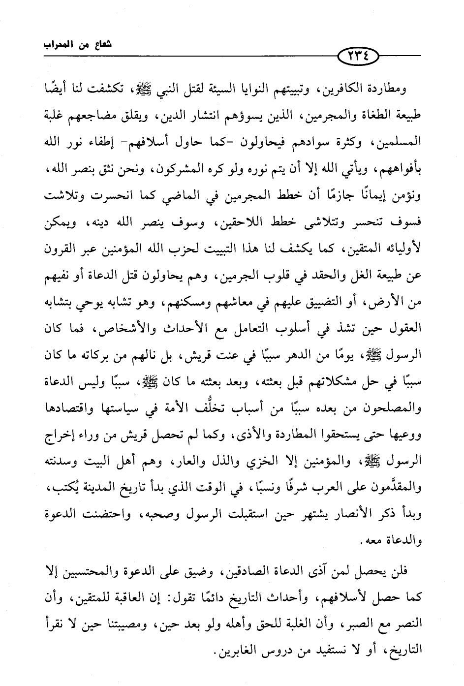 فلن يحصل لمن آذى الدعاة الصادقين، وضيق على الدعوة والمحتسبين إلا كما حصل لأسلافهم، وأحداث التاريخ دائمًا تقول: إن العاقبة للمتقين، وأن النصر مع الصبر، وأن الغلبة للحق وأهله ولو بعد حين، ومصيبتنا حين لا نقرأ التاريخ، أو لا نستفيد من دروس الغابرين.
