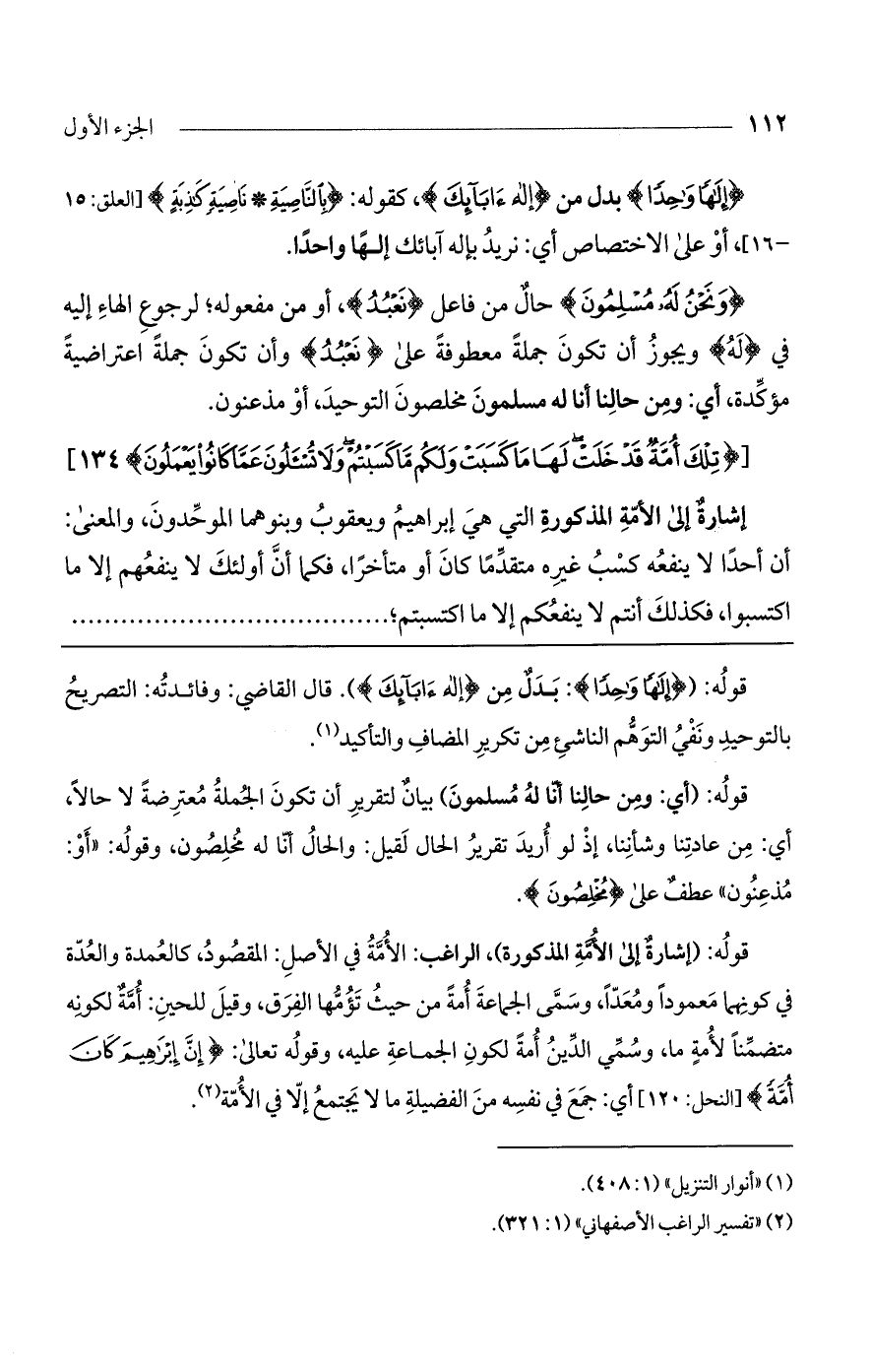 [(تِلْكَ أُمَّةٌ قَدْ خَلَتْ لَهَا مَا كَسَبَتْ وَلَكُمْ مَا كَسَبْتُمْ وَلا تُسْأَلُونَ عَمَّا كَانُوا يَعْمَلُونَ) 134].