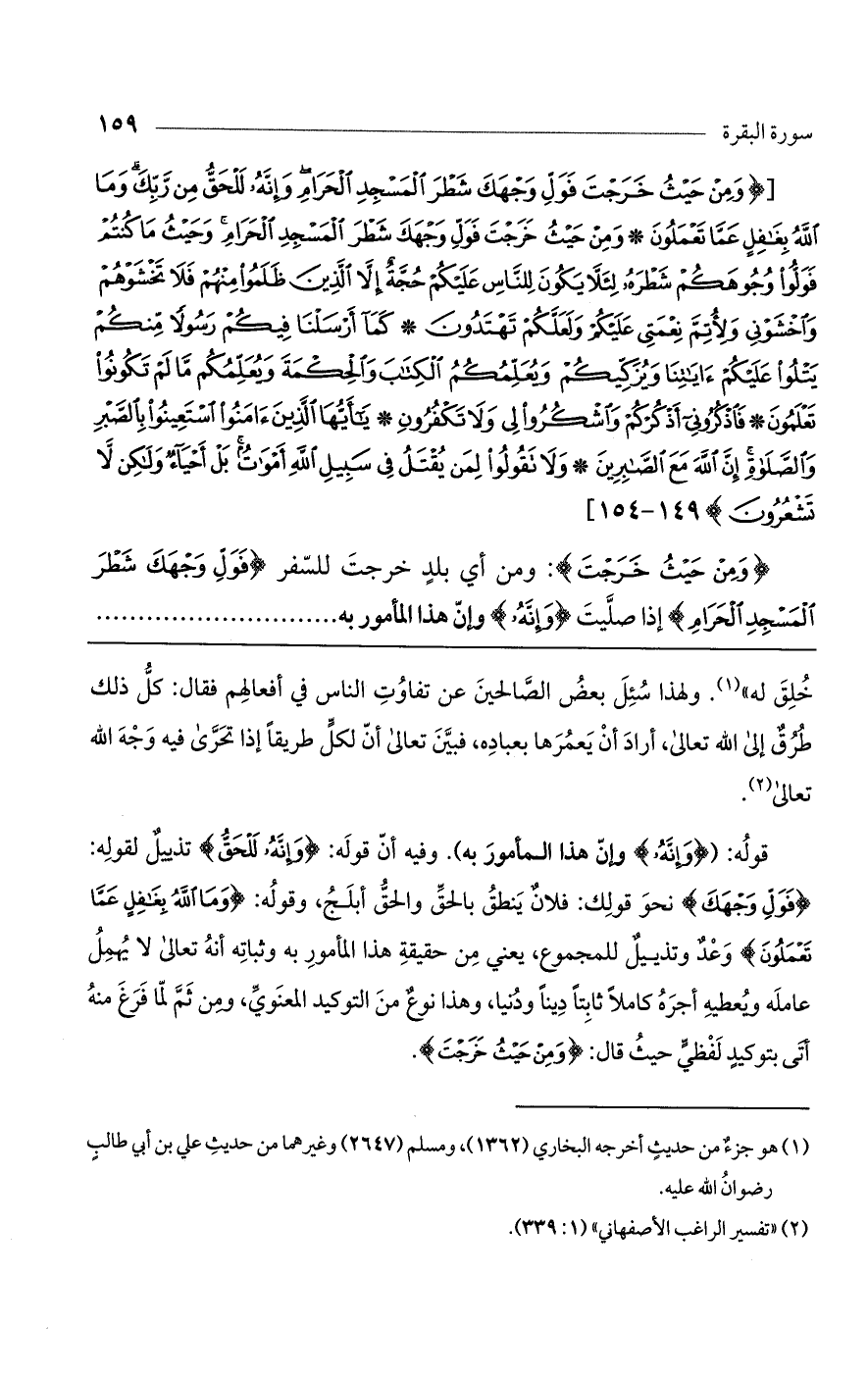[(وَمِنْ حَيْثُ خَرَجْتَ فَوَلِّ وَجْهَكَ شَطْرَ الْمَسْجِدِ الْحَرَامِ وَإِنَّهُ لَلْحَقُّ مِنْ رَبِّكَ وَمَا اللَّهُ بِغَافِلٍ عَمَّا تَعْمَلُونَ* وَمِنْ حَيْثُ خَرَجْتَ فَوَلِّ وَجْهَكَ شَطْرَ الْمَسْجِدِ الْحَرَامِ وَحَيْثُ مَا كُنتُمْ فَوَلُّوا وُجُوهَكُمْ شَطْرَهُ لِئَلاَّ يَكُونَ لِلنَّاسِ عَلَيْكُمْ حُجَّةٌ إِلاَّ الَّذِينَ ظَلَمُوا مِنْهُمْ فَلا تَخْشَوْهُمْ وَاخْشَوْنِي وَلأُتِمَّ نِعْمَتِي عَلَيْكُمْ وَلَعَلَّكُمْ تَهْتَدُونَ* كَمَا أَرْسَلْنَا فِيكُمْ رَسُولاً مِنْكُمْ يَتْلُو عَلَيْكُمْ آيَاتِنَا وَيُزَكِّيكُمْ وَيُعَلِّمُكُمْ الْكِتَابَ وَالْحِكْمَةَ وَيُعَلِّمُكُمْ مَا لَمْ تَكُونُوا تَعْلَمُونَ* فَاذْكُرُونِي أَذْكُرْكُمْ وَاشْكُرُوا لِي وَلا تَكْفُرُونِ* يَا أَيُّهَا الَّذِينَ آمَنُوا اسْتَعِينُوا بِالصَّبْرِ وَالصَّلاةِ إِنَّ اللَّهَ مَعَ الصَّابِرِينَ* وَلا تَقُولُوا لِمَنْ يُقْتَلُ فِي سَبِيلِ اللَّهِ أَمْوَاتٌ بَلْ أَحْيَاءٌ وَلَكِنْ لا تَشْعُرُونَ) 149 - 154].