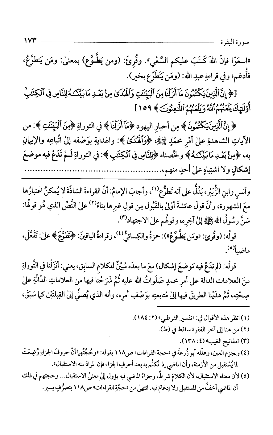 قوله: (وقرئ: "ومن يطوع"): حمزة والكسائي، وقراءة الباقين: (تَطَوَّعَ) على: تفعل، ماضياً.