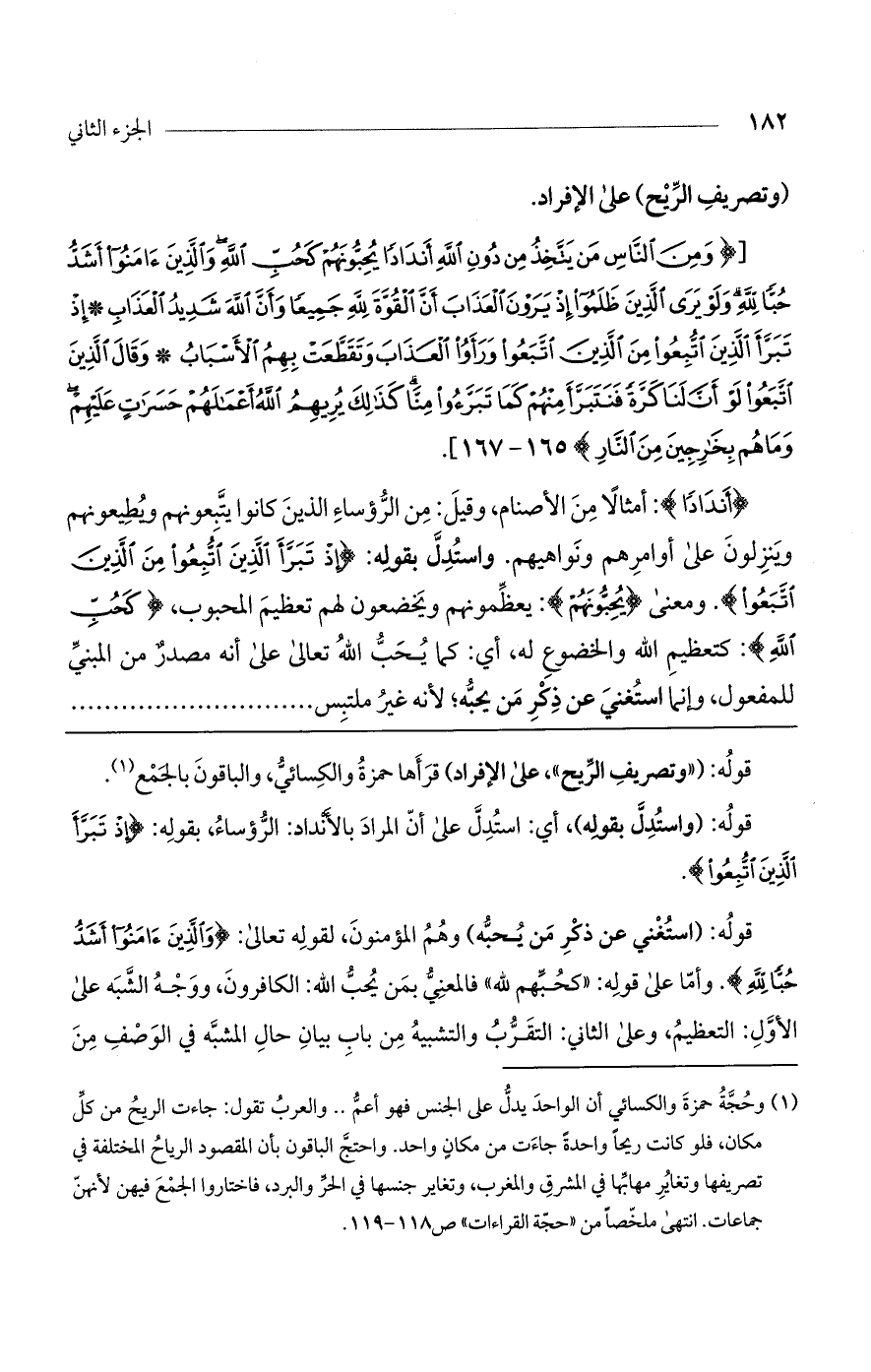 قوله: ("وتصريف الريح"، على الإفراد) قرأها حمزة والكسائي، والباقون بالجمع.
