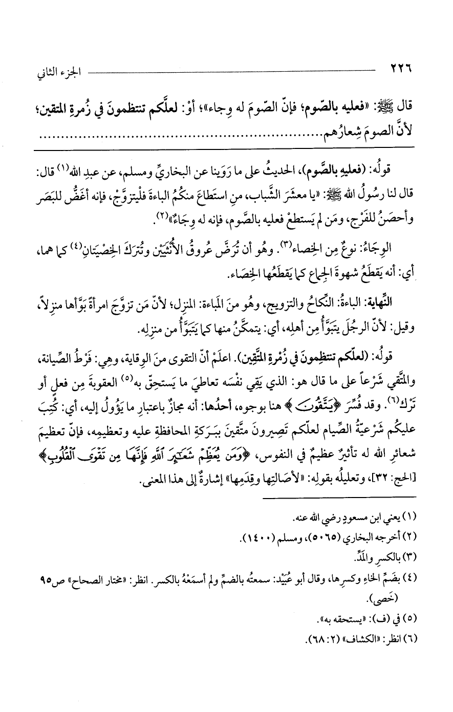 قال صلى الله عليه وسلم: «فعليه بالصوم فإنّ الصوم له وجاء» أو لعلكم تنتظمون في زمرة المتقين، لأنّ الصوم شعارهم