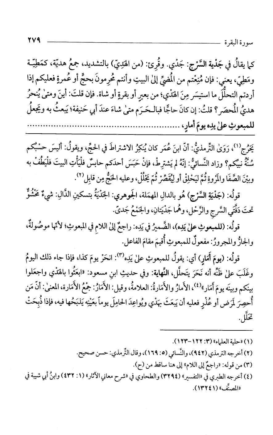 قوله: (يوم أمار) أي: يقول للمبعوث على يده: انحر يوم كذا، فإذا جاء ذلك اليوم وغلب على ظنه أنه نحر يتحلل، النهاية: وفي حديث ابن مسعود: "ابعثوا بالهدي واجعلوا بينكم وبينه يوم أمار"، الأمار والأمارة: العلامة، وقيل: الأمار: جمع الأمارة، المعنى: أن من أحصر لمرض أو عذر فعليه أن يبعث بهدي ويواعد الحامل يوماً بعينه يذبحها فيه، فإذا ذبحت تحلل.
