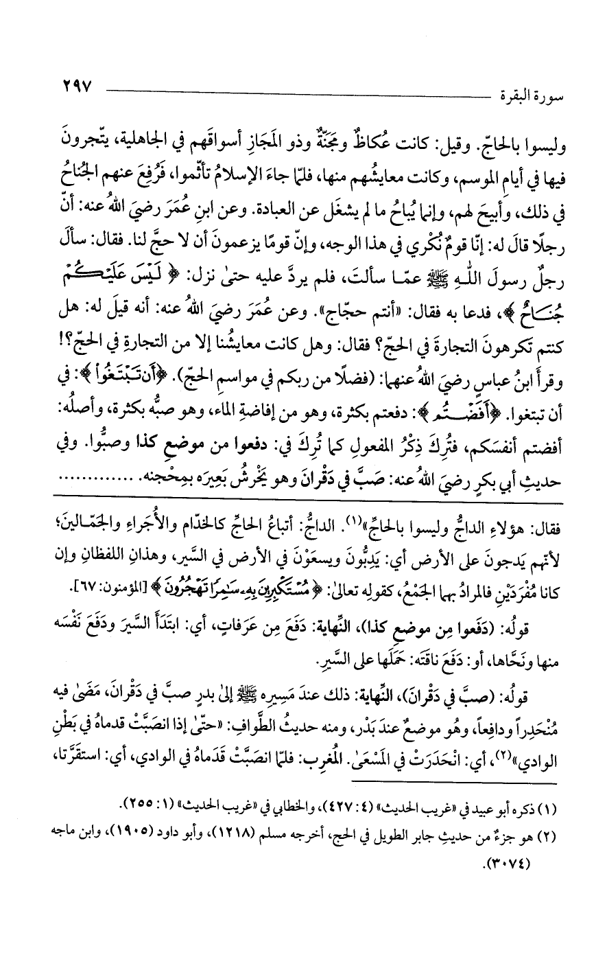 فقال: هؤلاء الداج وليسوا بالحاج". الداج: أتباع الحاج كالخدام والأجراء والجمالين؛ لأنهم يدجون على الأرض أي: يدبون ويسعون في الأرض في السير، وهذان اللفظان وإن كانا مفردين فالمراد بهما الجمع، كقوله تعالى: (مُسْتَكْبِرِينَ بِهِ سَامِراً تَهْجُرُونَ) [المؤمنون: 67].