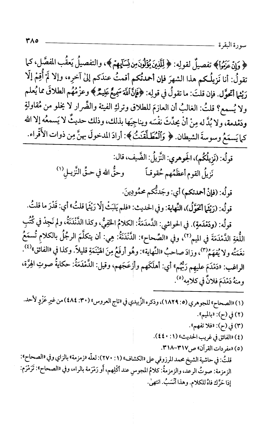 قوله: (ودمدمة). في الحواشي: الدمدمة: الكلام الخفي، وكذا الدندنة، ولم نجد في كتب اللغة الدمدمة في الميم، وفي "الصحاح": الدندنة: هي: أن يتكلم الرجل بالكلام تسمع نغمته ولا يفهم، وزاد صاحب "النهاية": وهو أرفع من الهينمة قليلاً. وكذا في "الفائق". الراغب: "دمدم عليهم ربهم" أي: أهلكهم وأزعجهم، وقيل: الدمدمة: حكاية صوت الهرة، ومنه دمدم فلان في كلامه.