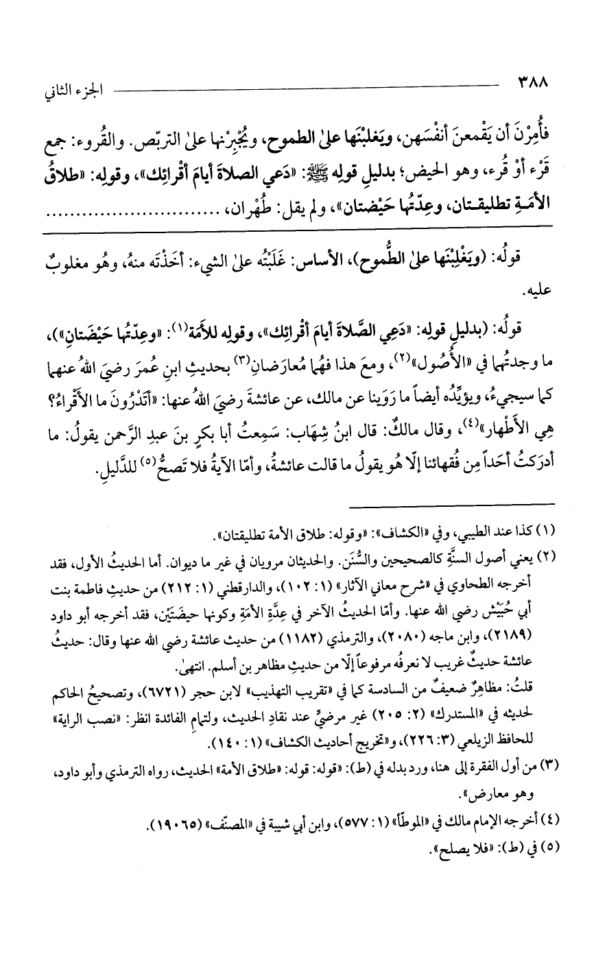 قوله: (بدليل قوله: "دعي الصلاة أيام أقرائك"، وقوله للأمة: "وعدتها حيضتان")، ما وجدتهما في "الأصول"، ومع هذا فهما معارضان بحديث ابن عمر رضي الله عنهما كما سيجيء، ويؤيده أيضاً ما روينا عن مالك، عن عائشة رضي الله عنها: "أتدرون ما الأقراء؟ هي الأطهار"، وقال مالك: قال ابن شهاب: سمعت أبا بكر بن عبد الرحمن يقول: ما أدركت أحداً من فقهائنا إلا هو يقول ما قالت عائشة، وأما الآية فلا تصح للدليل.