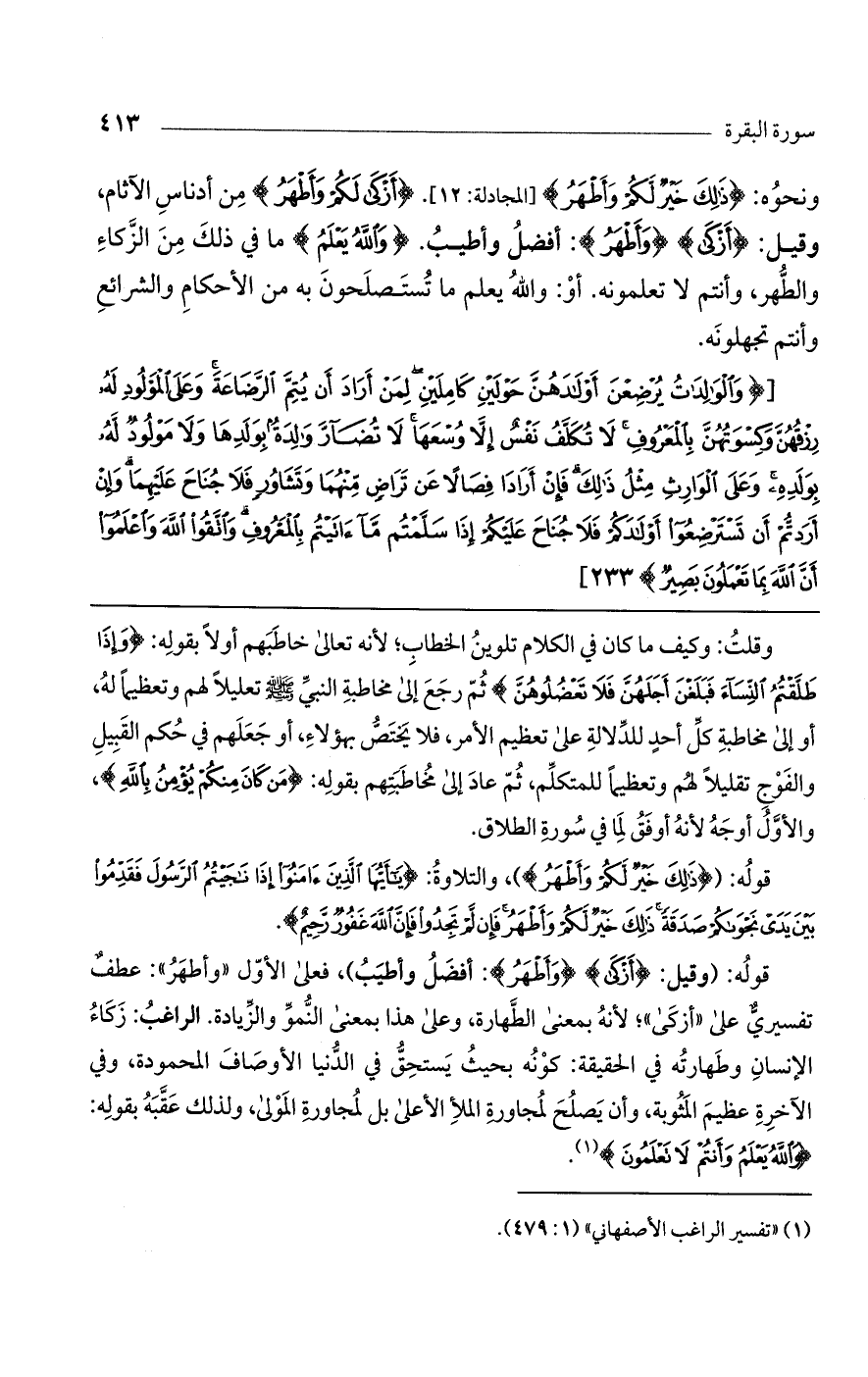 ونحوه: (ذلِكَ خَيْرٌ لَكُمْ وَأَطْهَرُ) [المجادلة: 12]. (أَزْكى لَكُمْ وَأَطْهَرُ) من أدناس الآثام، وقيل: (أَزْكى) (وَأَطْهَرُ): أفضل وأطيب. (وَاللَّهُ يَعْلَمُ) ما في ذلك من الزكاء والطهر، وأنتم لا تعلمونه. أو: واللَّهُ يعلم ما تستصلحون به من الأحكام والشرائع وأنتم تجهلونه.