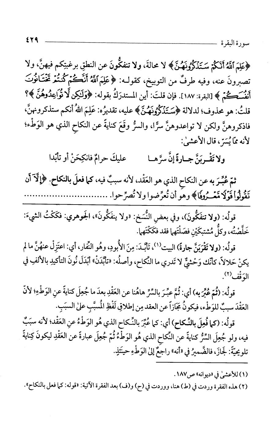 وَلَا تَقْرَبَنْ مِنْ جَارَةٍ إنَّ سِرَّهَا ... عَلَيْكَ حَرَامٌ فَانْكِحَنْ أوْ تَأَبَّدَا