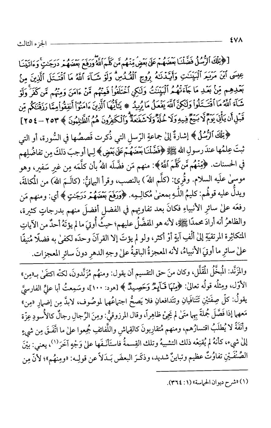 [(تِلْكَ الرُّسُلُ فَضَّلْنا بَعْضَهُمْ عَلى بَعْضٍ مِنْهُمْ مَنْ كَلَّمَ اللَّهُ وَرَفَعَ بَعْضَهُمْ دَرَجاتٍ وَآتَيْنا عِيسَى ابْنَ مَرْيَمَ الْبَيِّناتِ وَأَيَّدْناهُ بِرُوحِ الْقُدُسِ وَلَوْ شاءَ اللَّهُ مَا اقْتَتَلَ الَّذِينَ مِنْ بَعْدِهِمْ مِنْ بَعْدِ ما جاءَتْهُمُ الْبَيِّناتُ وَلكِنِ اخْتَلَفُوا فَمِنْهُمْ مَنْ آمَنَ وَمِنْهُمْ مَنْ كَفَرَ وَلَوْ شاءَ اللَّهُ مَا اقْتَتَلُوا وَلكِنَّ اللَّهَ يَفْعَلُ ما يُرِيدُ* يا أَيُّهَا الَّذِينَ آمَنُوا أَنْفِقُوا مِمَّا رَزَقْناكُمْ مِنْ قَبْلِ أَنْ يَاتِيَ يَوْمٌ لا بَيْعٌ فِيهِ وَلا خُلَّةٌ وَلا شَفاعَةٌ وَالْكافِرُونَ هُمُ الظَّالِمُونَ)].