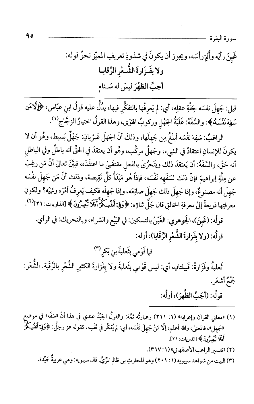 قيل: جهل نفسه لخفة عقله، أي: لم يعرفها بالتفكر فيها، يدل عليه قول ابن عباس، (إِلاَّ مَنْ سَفِهَ نَفْسَهُ): والسفه: غلبة الجهل وركوب الهوى، وهذا القول اختيار الزجاج.