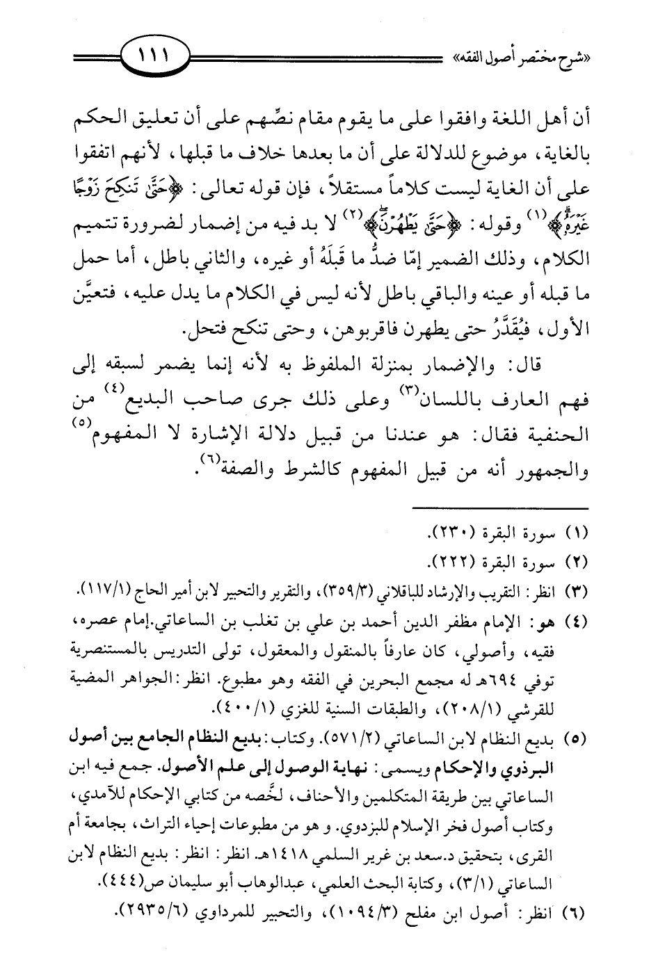 (¬4) هو: الإمام مظفر الدين أحمد بن علي بن تغلب بن الساعاتي. إمام عصره، فقيه، وأصولي، كان عارفًا بالمنقول والمعقول، تولى التدريس بالمستنصرية توفي 694 هـ له مجمع البحرين في الفقه وهو مطبوع. انظر: الجواهر المضية للقرشي (1/ 208)، والطبقات السنية للغزي (1/ 400).