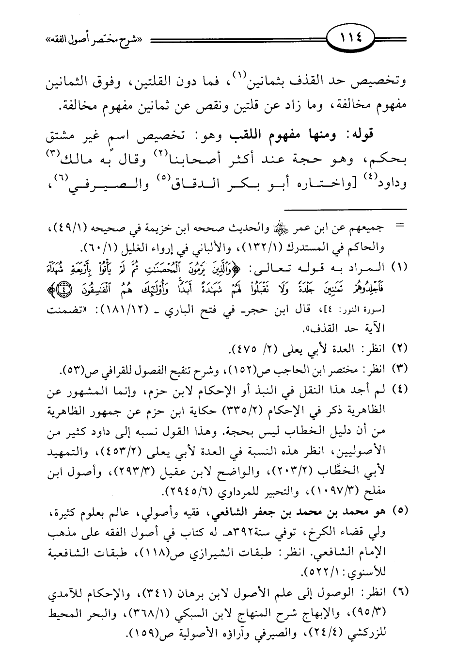 (¬3) انظر: مختصر ابن الحاجب ص (152)، وشرح تنقيح الفصول للقرافي ص (53).