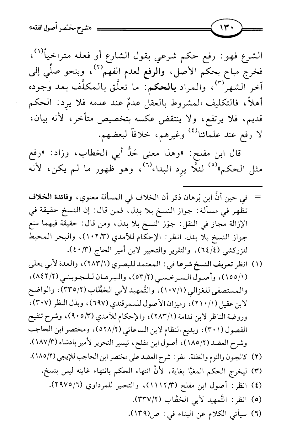 قال ابن مفلح: "وهذا معنى حَدُّ أبي الخطاب، وزاد: "رفع مثل الحكم" (¬5) لئلَّا يرِد البداء (¬6)، وهو ظهور ما لم يكن، لأنه