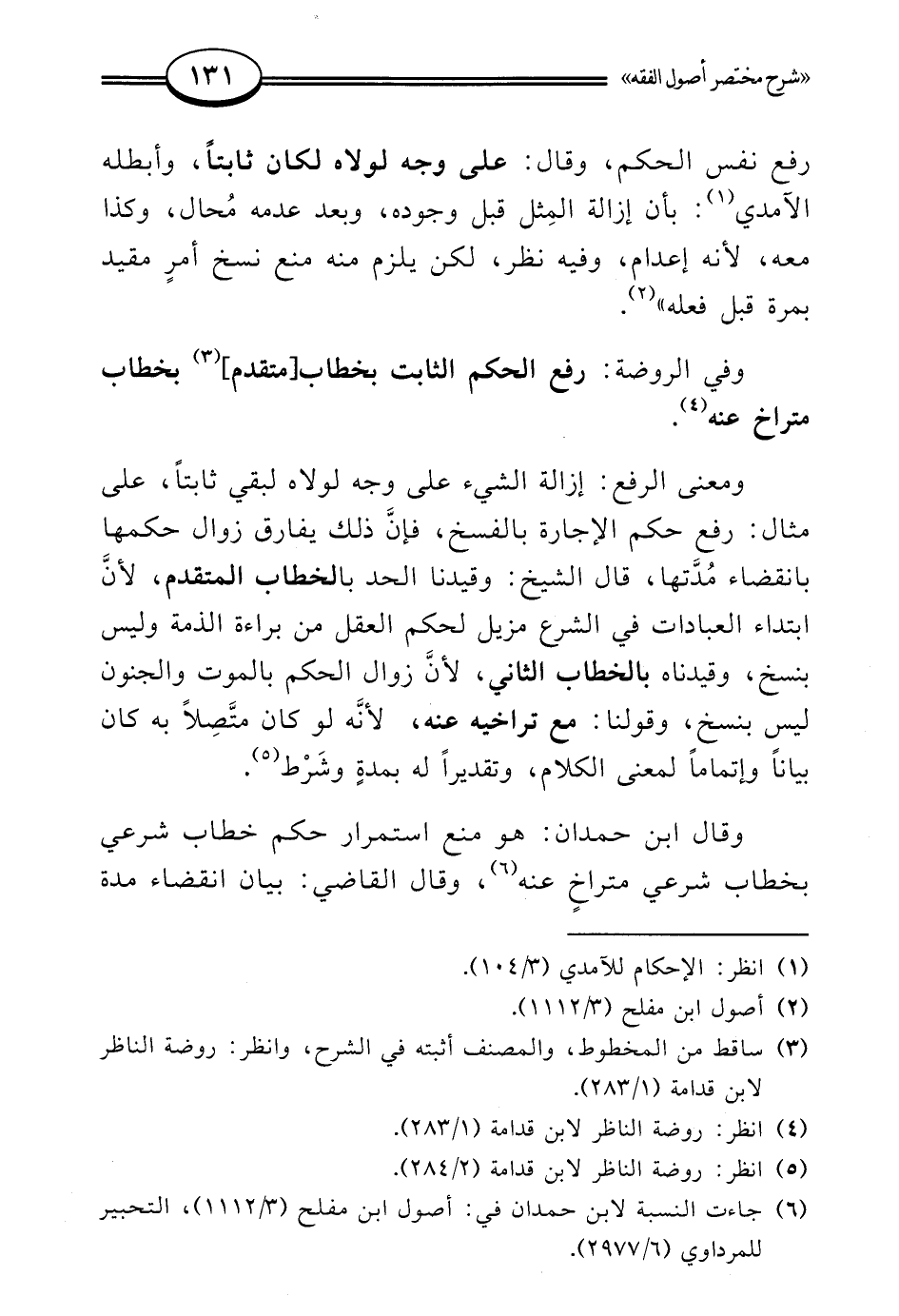(¬6) جاءت النسبة لابن حمدان في: أصول ابن مفلح (3/ 1112)، التحبير للمرداوي (6/ 2977).