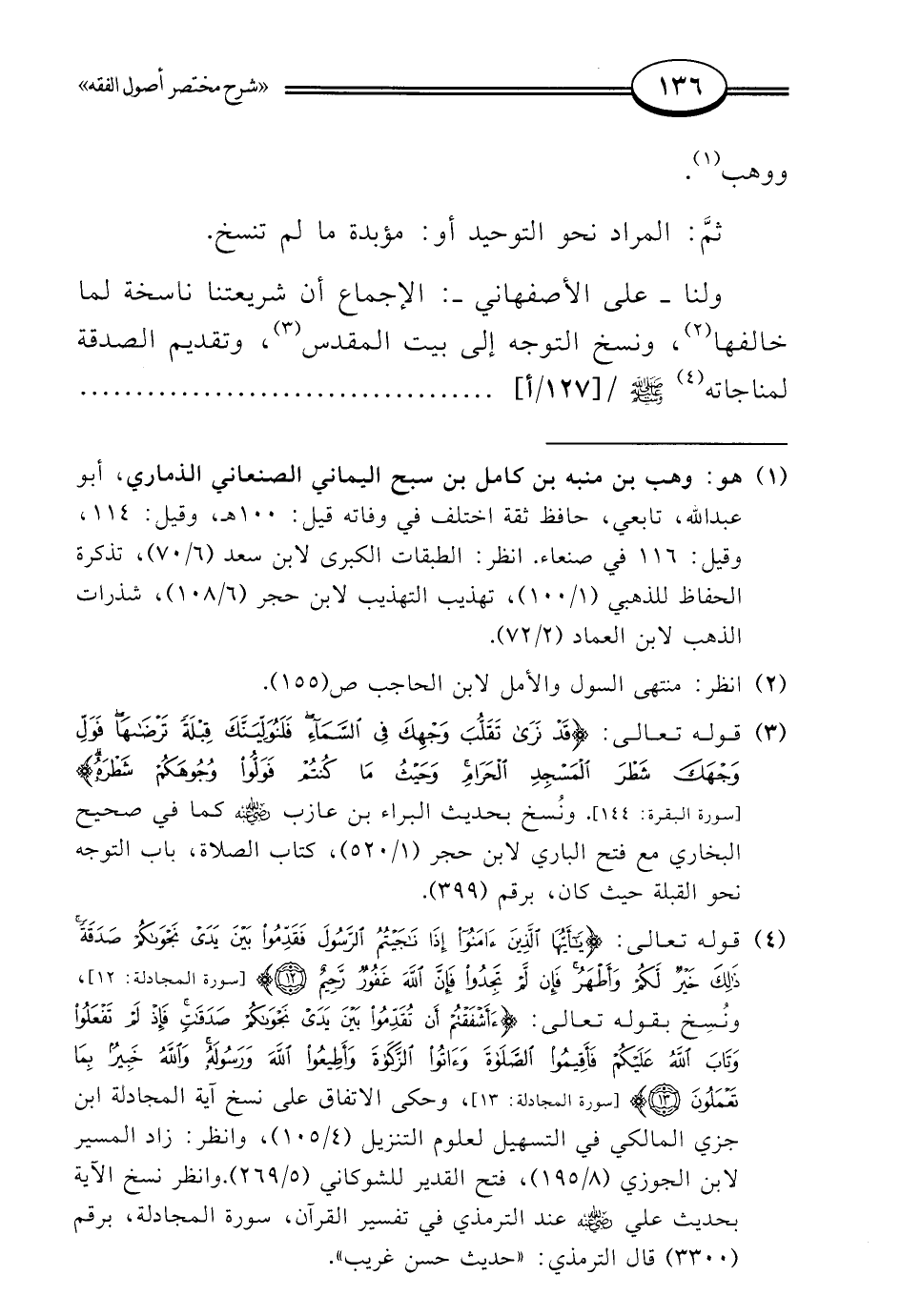 ولنا -على الأصفهاني-: الإجماع أن شريعتنا ناسخة لما خالفها (¬2)، ونسخ التوجه إلى بيت المقدس (¬3)، وتقديم الصدقة لمناجاته (¬4) -صلى الله عليه وسلم-
