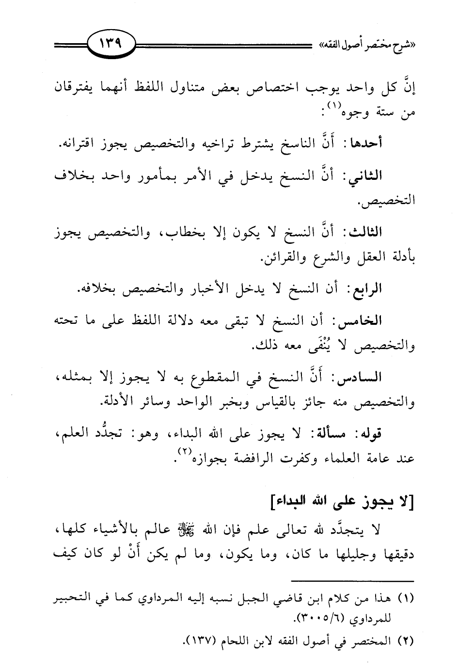 (¬2) المختصر في أصول الفقه لابن اللحام (137).
