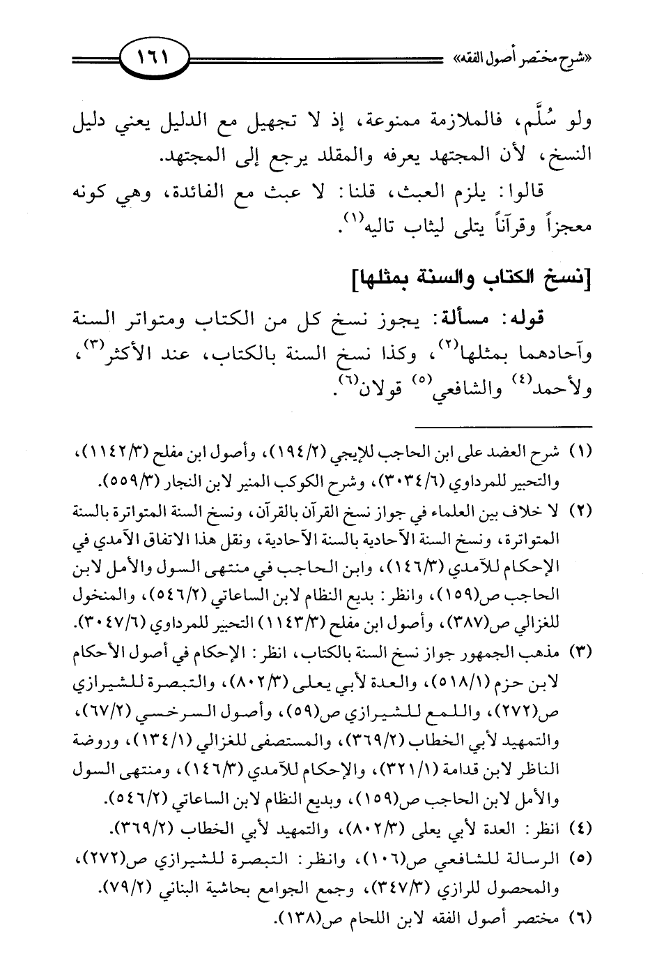 (¬1) شرح العضد على ابن الحاجب للإيجي (2/ 194)، وأصول ابن مفلح (3/ 1142)، والتحبير للمرداوي (6/ 3034)، وشرح الكوكب المنير لابن النجار (3/ 559).