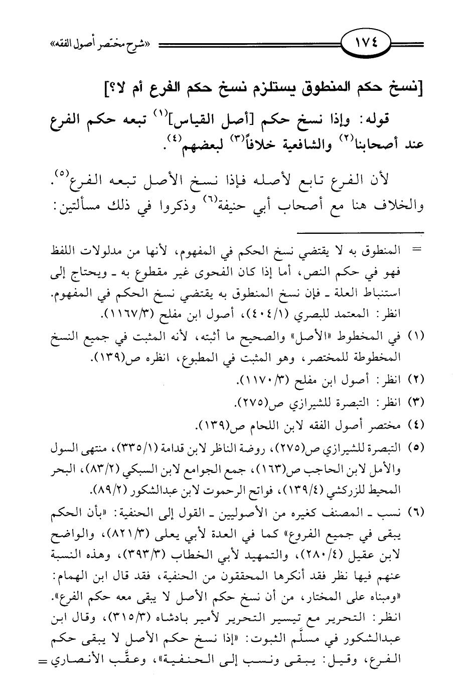 لأن الفرع تابع لأصله فإذا نسخ الأصل تبعه الفرع (¬5). والخلاف هنا مع أصحاب أبي حنيفة (¬6) وذكروا في ذلك مسألتين: