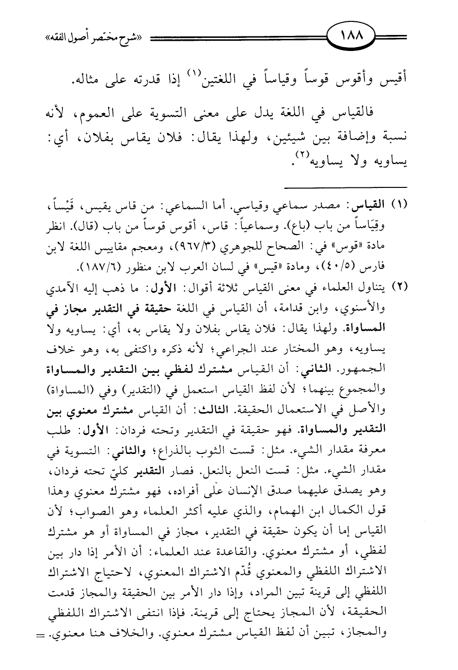 (¬1) القياس: مصدر سماعي وقياسي. أما السماعي: من قاس يقيس، قَيْسًا، وقِيَاسًا من باب (باع). وسماعيًا: قاس، أقوس قوسًا من باب (قال). انظر مادة "قوس" في: الصحاح للجوهري (3/ 967)، ومعجم مقاييس اللغة لابن فارس (5/ 40)، ومادة "قيس" في لسان العرب لابن منظور (6/ 187).