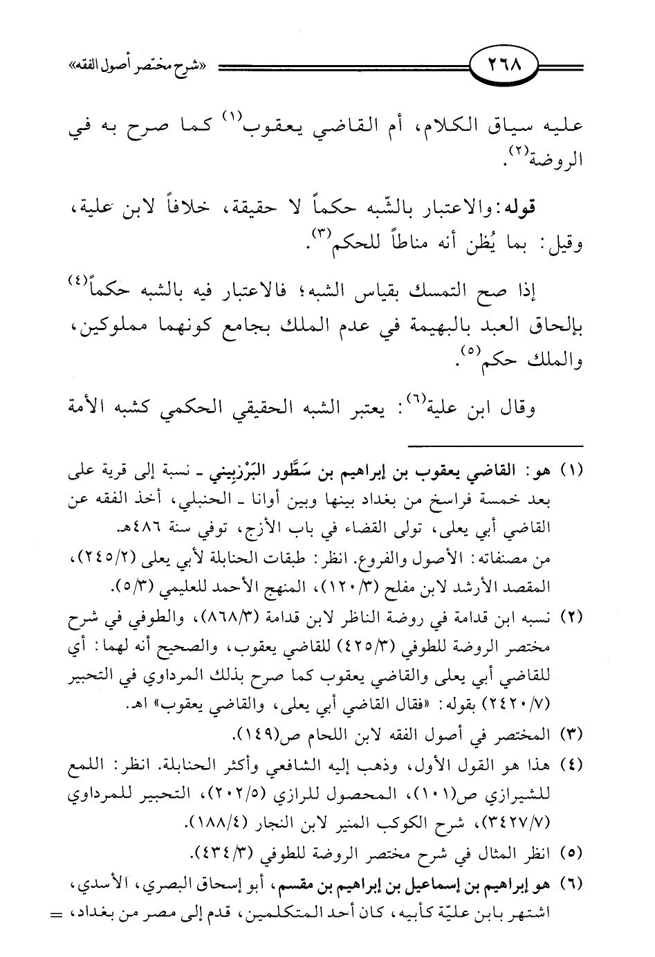 (¬2) نسبه ابن قدامة في روضة الناظر لابن قدامة (3/ 868)، والطوفي في شرح مختصر الروضة للطوفي (3/ 425) للقاضي يعقوب، والصحيح أنه لهما: أي للقاضي أبي يعلى والقاضي يعقوب كما صرح بذلك المرداوي في التحبير (7/ 2420) بقوله: "فقال القاضي أبي يعلى، والقاضي يعقوب" اهـ.