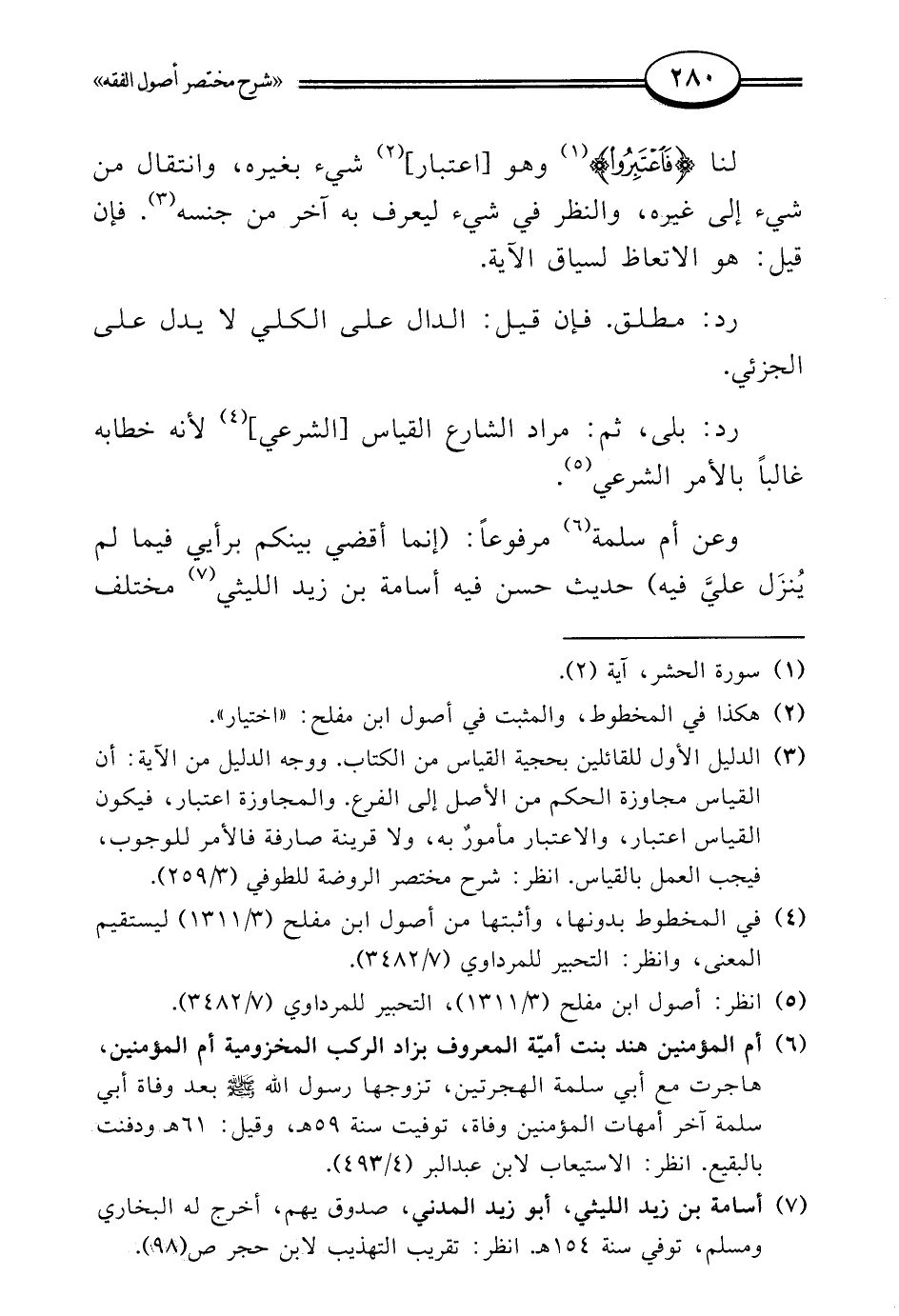 (¬5) انظر: أصول ابن مفلح (3/ 131)، التحبير للمرداوي (7/ 3482).