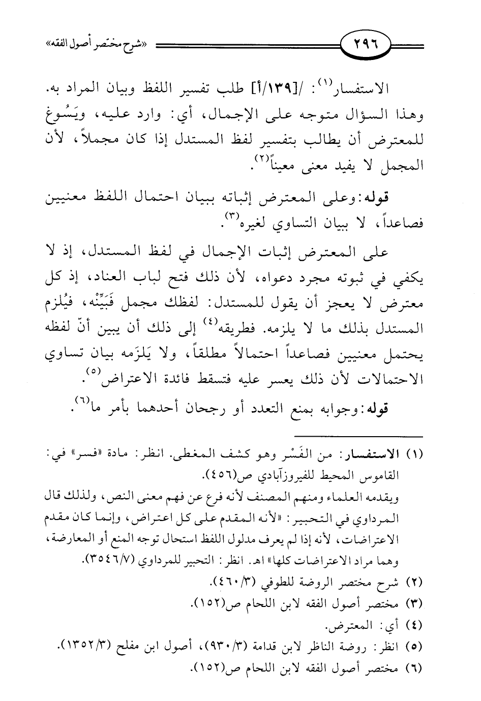 (¬1) الاستفسار: من الفَسْر وهو كشف المغطى. انظر: مادة "فسر" في: القاموس المحيط للفيروزآبادي ص (456).