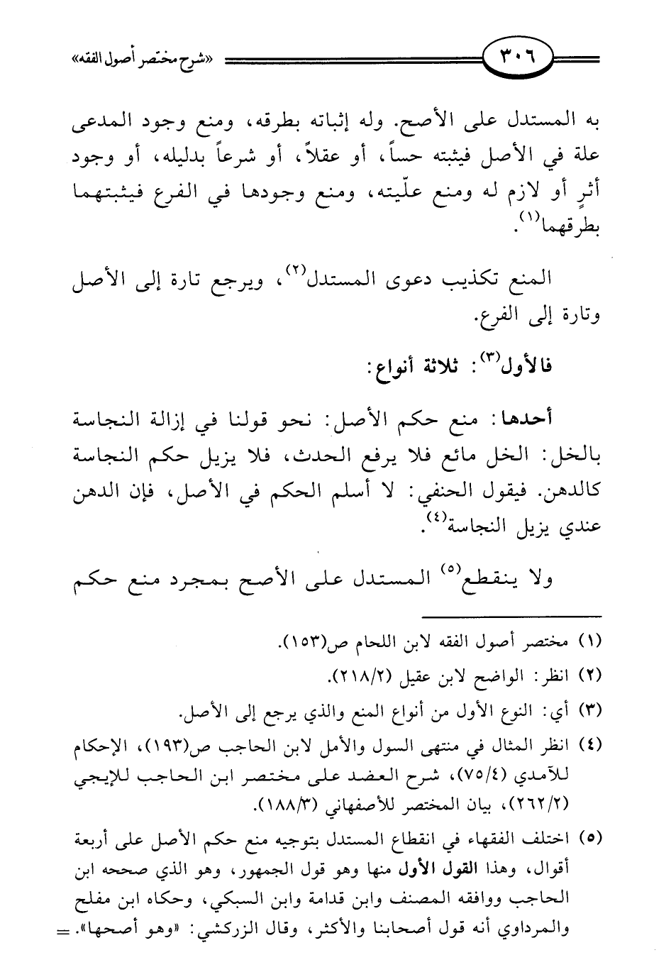 (¬4) انظر المثال في منتهى السول والأمل لابن الحاجب ص (193)، الأحكام للآمدي (4/ 75)، شرح العضد على مختصر ابن الحاجب للإيجي (2/ 262)، بيان المختصر للأصفهاني (3/ 188).