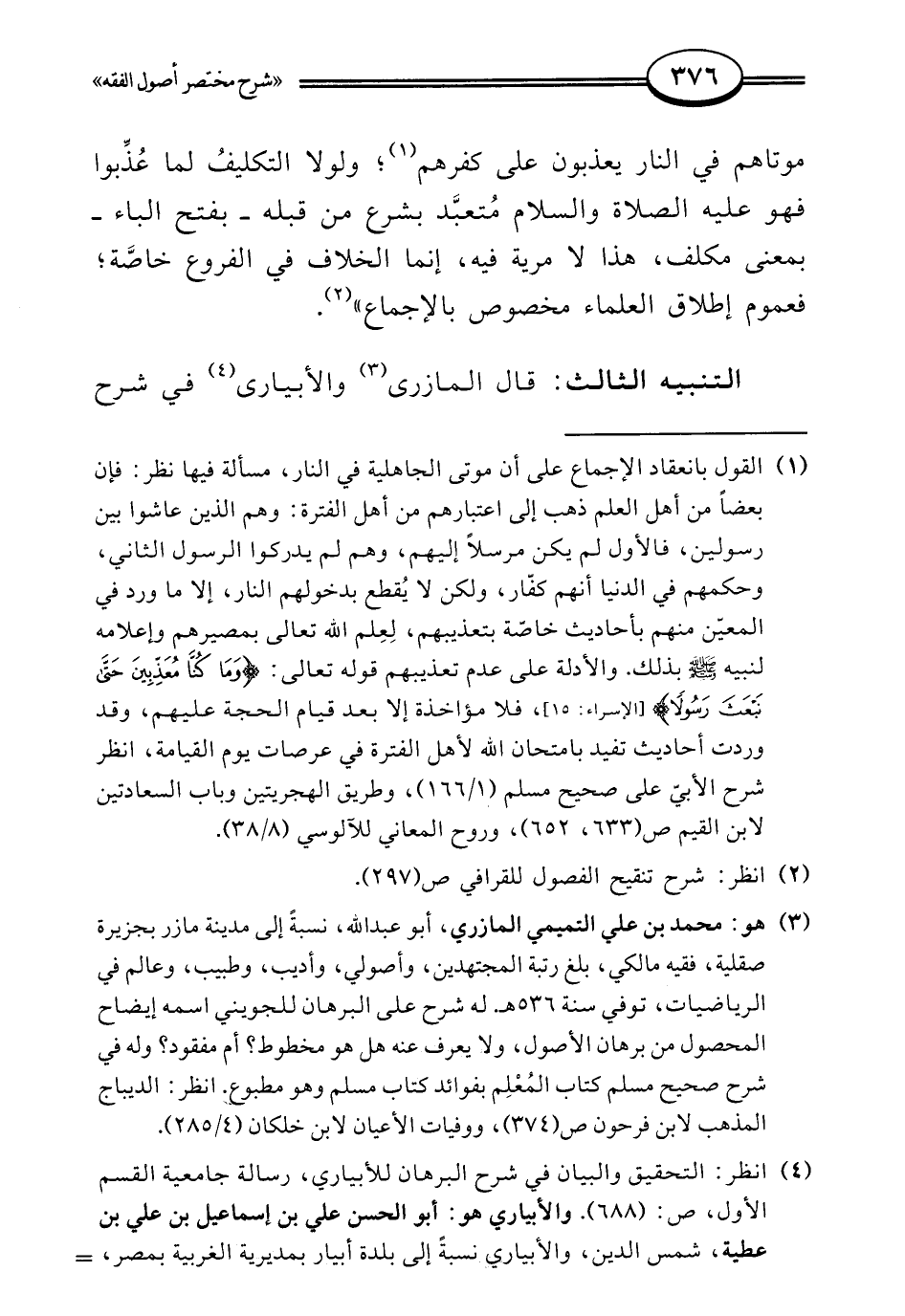 (¬4) انظر: التحقيق والبيان في شرح البرهان للأبياري، رسالة جامعية القسم الأول، ص: (688). والأبياري هو: أبو الحسن علي بن إسماعيل بن علي بن عطية، شمس الدين، والأبياري نسبةً إلى بلدة أبيار بمديرية الغربية بمصر، =