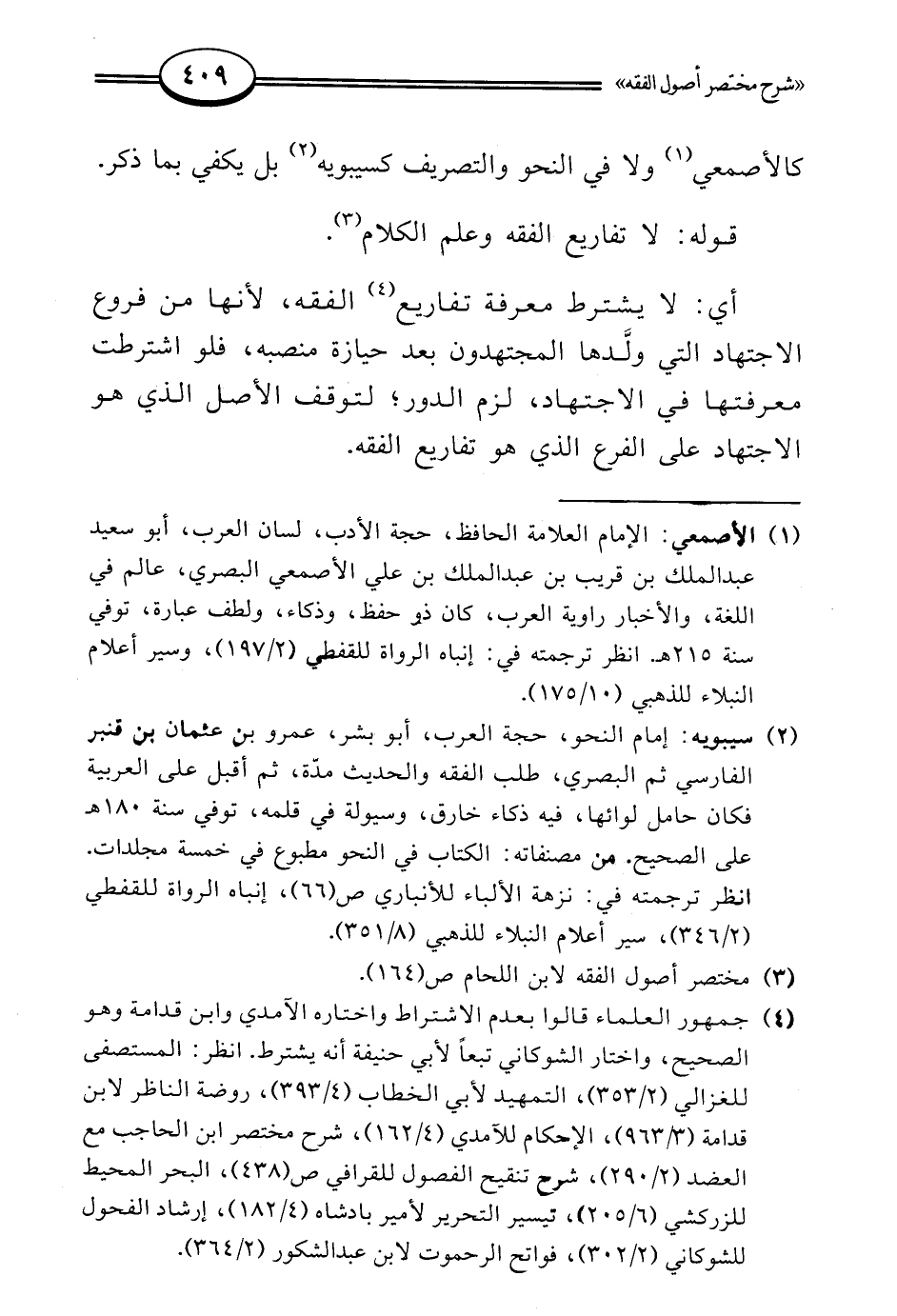 (¬4) جمهور العلماء قالوا بعدم الاشتراط واختاره الآمدي وابن قدامة وهو الصحيح، واختار الشوكاني تبعًا لأبي حنيفة أنه يشترط. انظر: المستصفى للغزالي (2/ 353)، التمهيد لأبي الخطاب (4/ 393)، روضة الناظر لابن قدامة (3/ 963)، الإحكام للآمدي (4/ 162)، شرح مختصر ابن الحاجب مع العضد (2/ 290)، شرح تنقيح الفصول للقرافي ص (438)، البحر المحيط للزركشي (6/ 205)، تيسير التحرير لأمير بادشاه (4/ 182)، إرشاد الفحول للشوكاني (2/ 302)، فواتح الرحموت لابن عبد الشكور (2/ 364).
