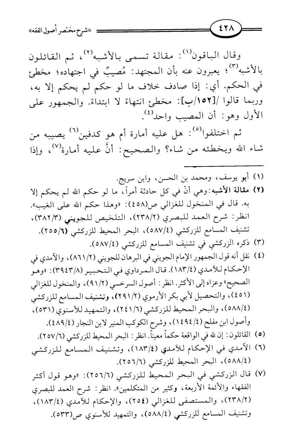(¬5) القائلون: إن لله في الواقعة حكمًا معينًا. انظر: البحر المحيط للزركشي (6/ 257).